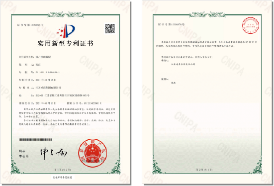 鴻晨集團申報的“鏡片抑菌膜層”創(chuàng)新成果獲國家知識產(chǎn)權局授予的實用新型專利證書。